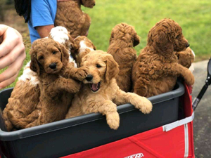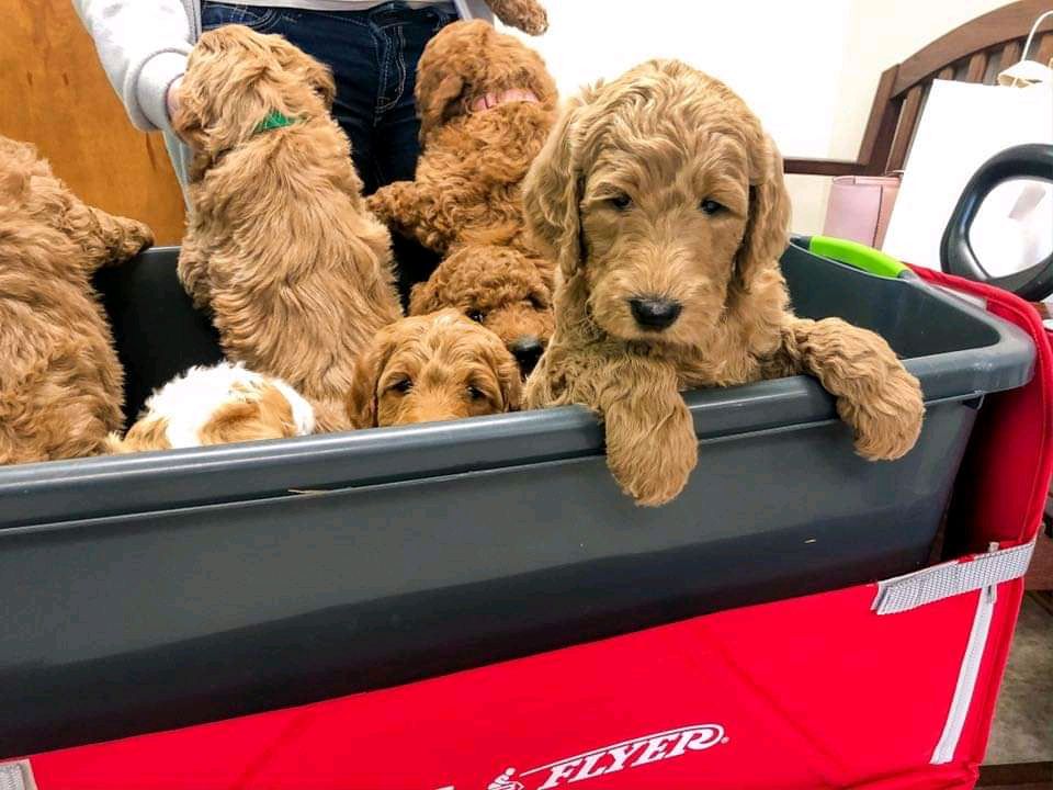 We are Breeders specializing in adorable Mini-Golden Doodles weighing 20 to 35 pounds as adults which makes them an ideal pet in a smaller size. We believe in pampering our dogs and puppies in our home and not in outside kennels